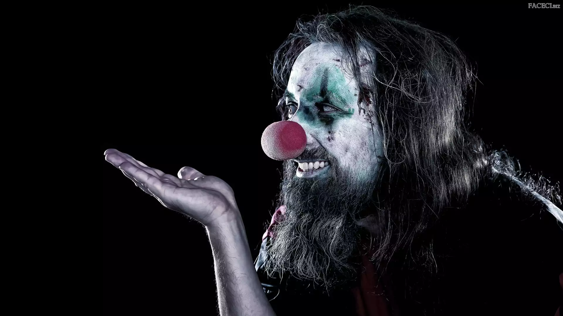 Uśmiech, Mężczyzna, Tło, Czarne, Przebranie, Klaun - faceci.biz